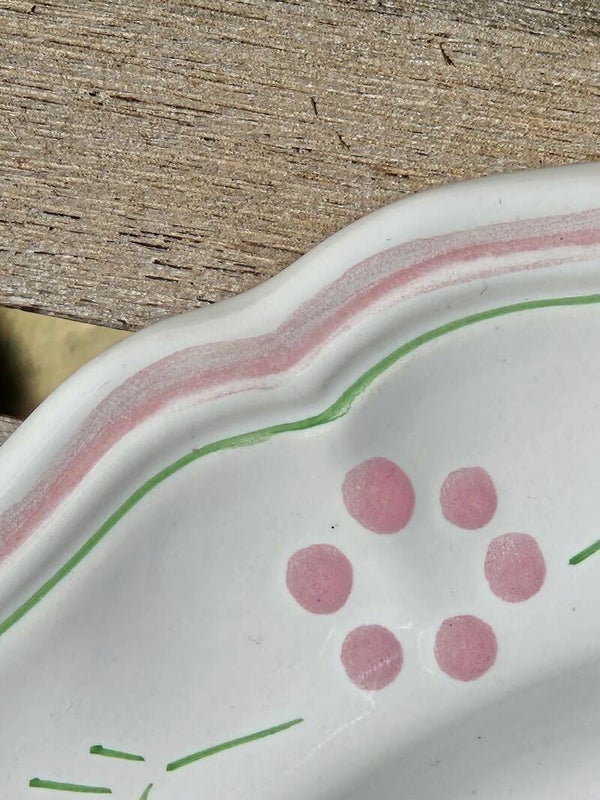 Assiettes plates Longchamp en très bon état, décor floral peint à la main en céramique émaillée.