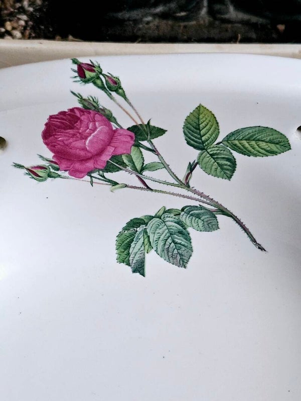 Porte savon mural, manufacture de la reine en porcelaine, excellent état avec ce joli décor de roses 🌹 années 60-70