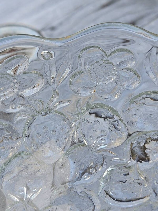 Coupe à fruit en verre épais donc lourd, années 60-70, décor de fraises en relief .